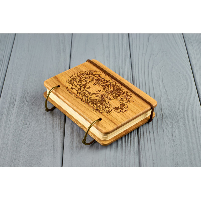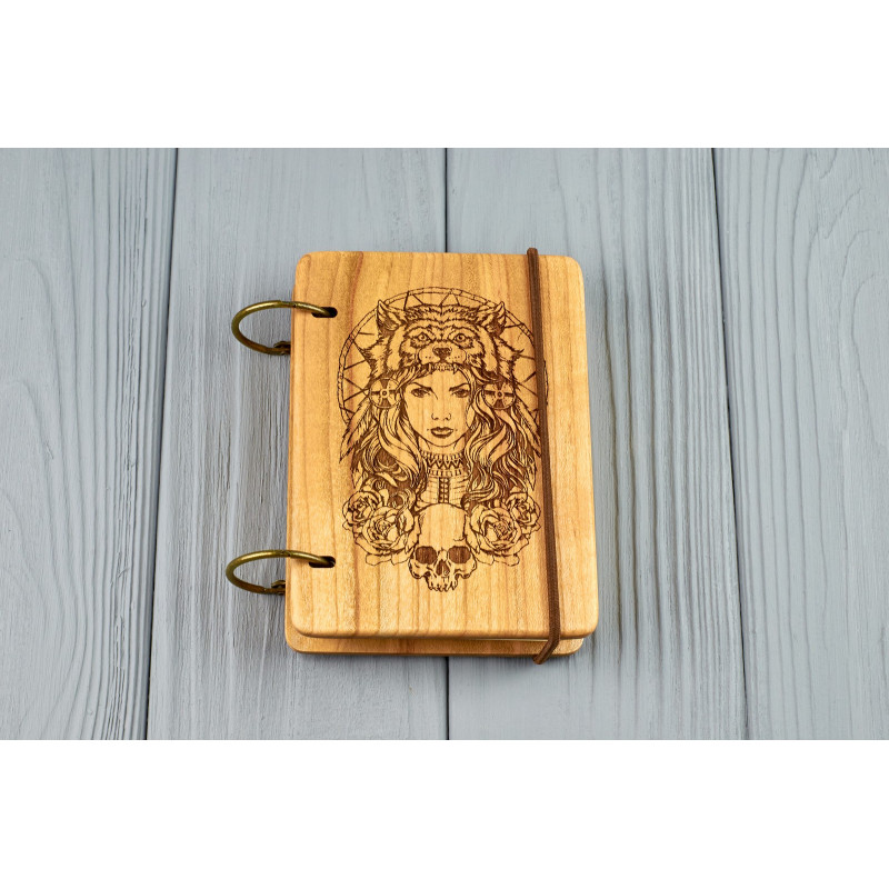 Дерев'яний блокнот є прекрасним подарунком з будь-якого приводу. На обкладинці можна зробити індивідуальне гравіювання або порізку на прохання замовника.
