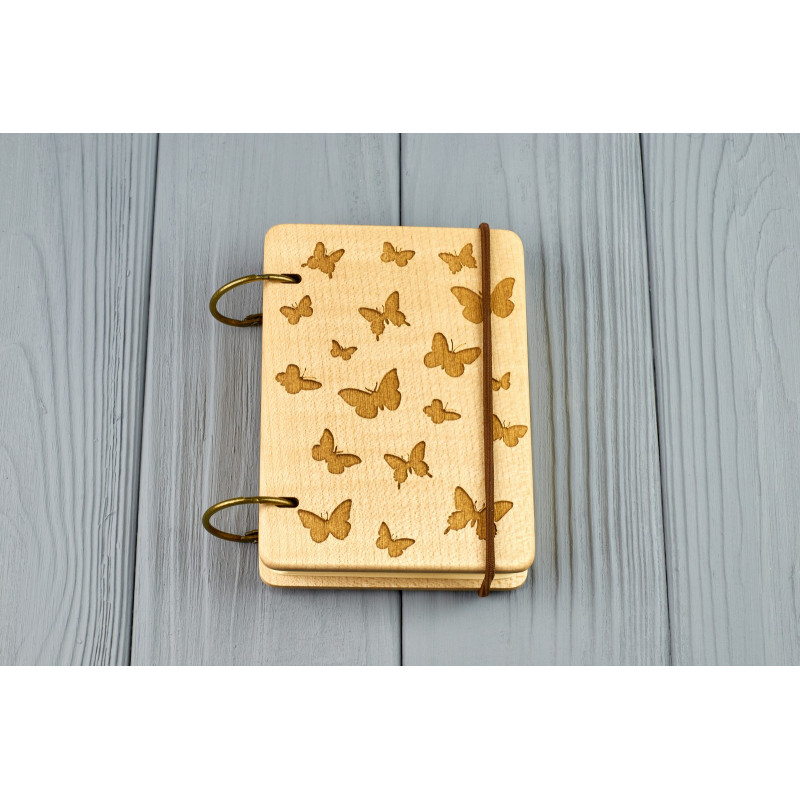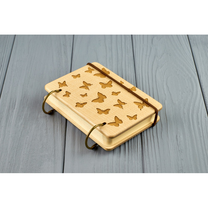 Кишеньковий блокнот з дерева формат А7 на кільцях "Метелики"