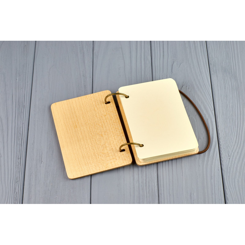 Дерев'яний блокнот є прекрасним подарунком з будь-якого приводу. На обкладинці можна зробити індивідуальне гравіювання або порізку на прохання замовника.
