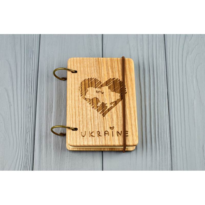 Кишеньковий блокнот з дерева формат А7 на кільцях "Люблю Україну"