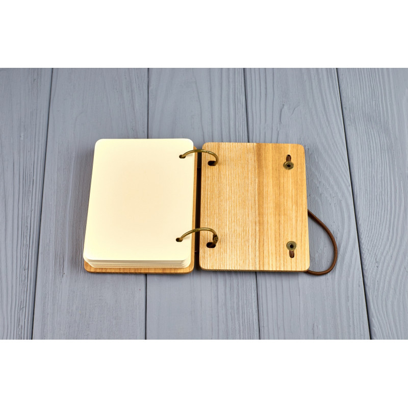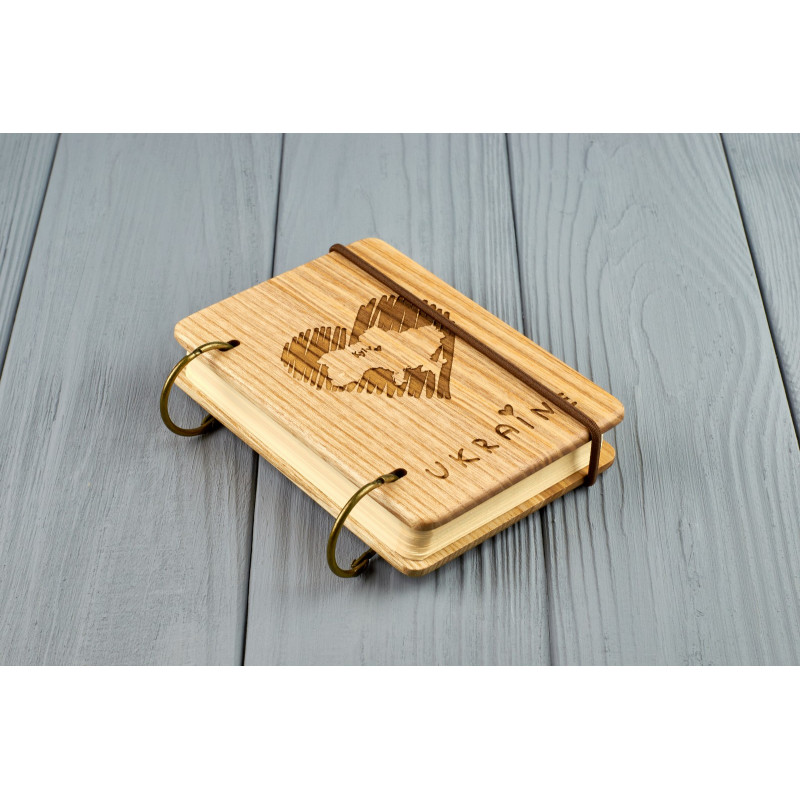 Дерев'яний блокнот є прекрасним подарунком з будь-якого приводу. На обкладинці можна зробити індивідуальне гравіювання або порізку на прохання замовника.