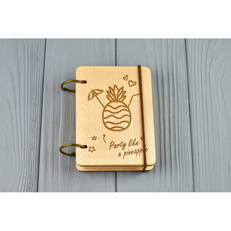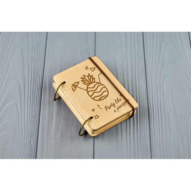 Кишеньковий блокнот з дерева формат А7 на кільцях "Pineapple party"