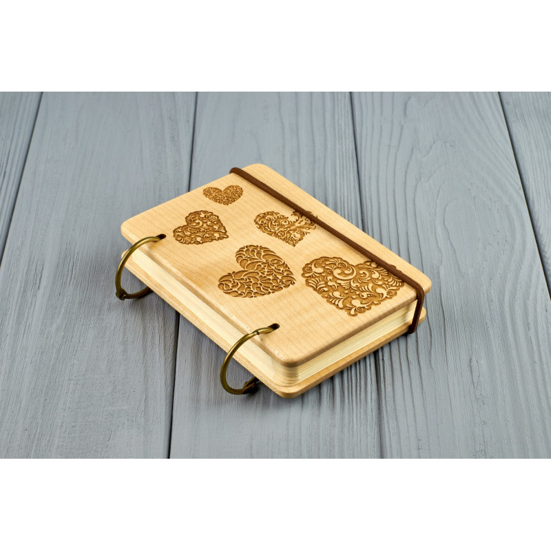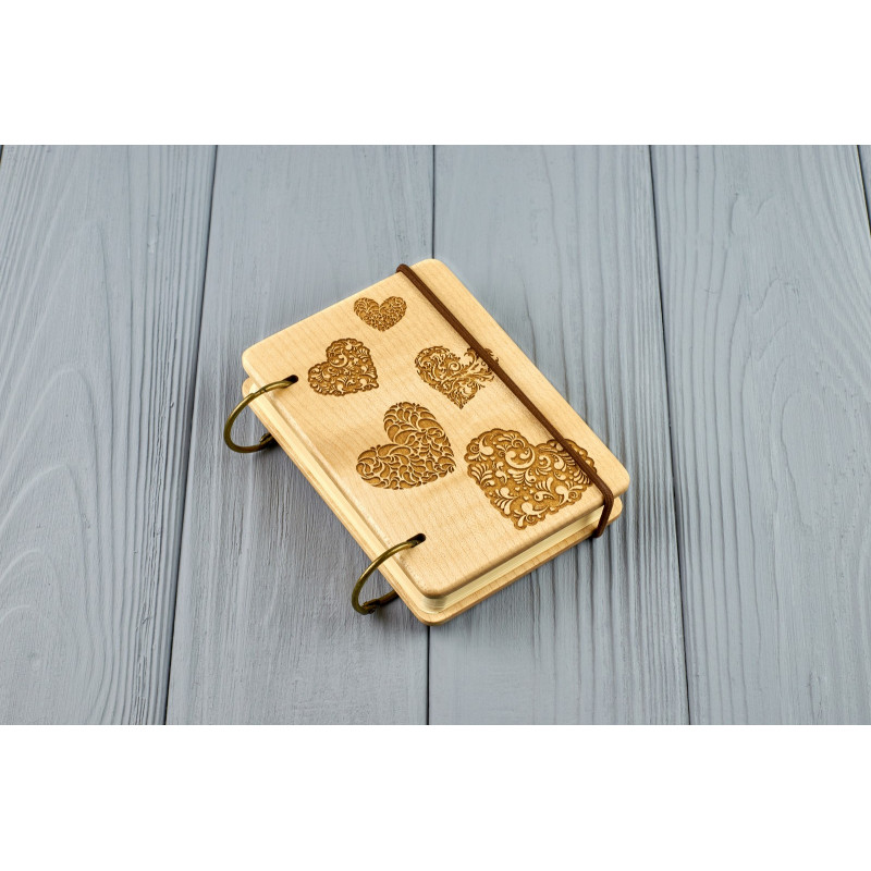 Кишеньковий блокнот з дерева формат А7 на кільцях "Сердечка"