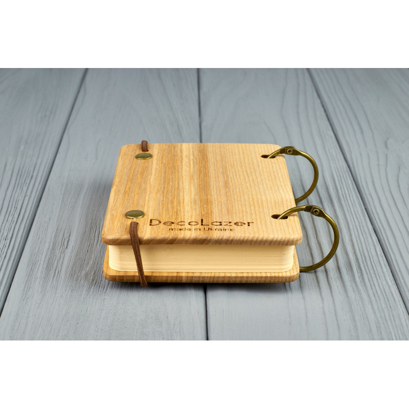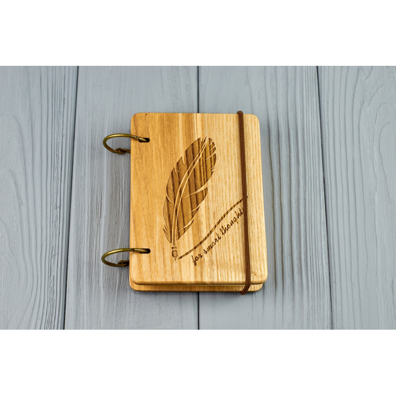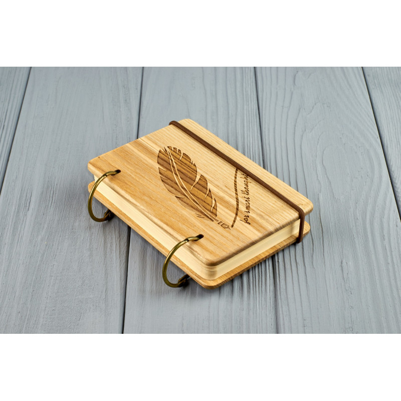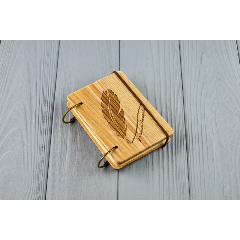 Дерев'яний блокнот є прекрасним подарунком з будь-якого приводу. На обкладинці можна зробити індивідуальне гравіювання або порізку на прохання замовника.