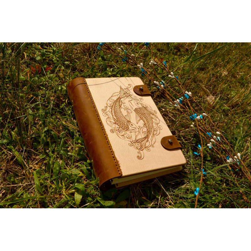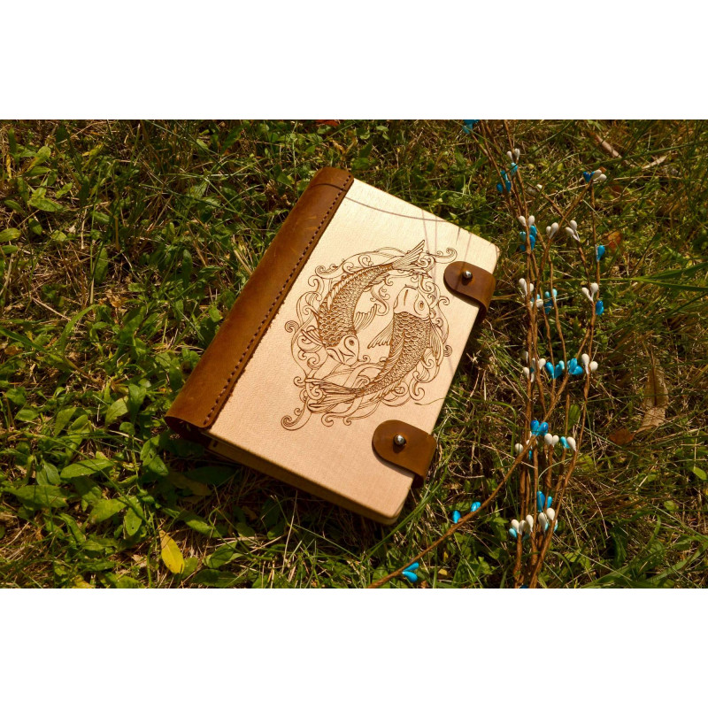 Блокнот з натурального дерева в поєднанні зі шкірою "Риби"