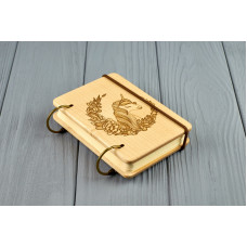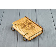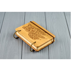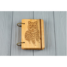 Кишеньковий блокнот з дерева формат А7 на кільцях "Вовк-талісман"