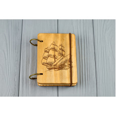 Кишеньковий блокнот з дерева формат А7 на кільцях "Корабель"