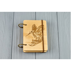 Кишеньковий блокнот з дерева формат А7 на кільцях "Колібрі"
