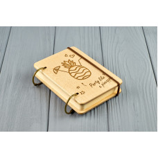Кишеньковий блокнот з дерева формат А7 на кільцях "Pineapple party"