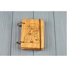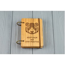 Кишеньковий блокнот з дерева формат А7 на кільцях "Панда"