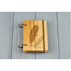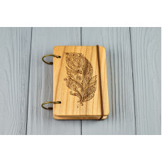 Кишеньковий блокнот з дерева формат А7 на кільцях "Перо орнамент"