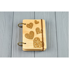 Кишеньковий блокнот з дерева формат А7 на кільцях "Сердечка"