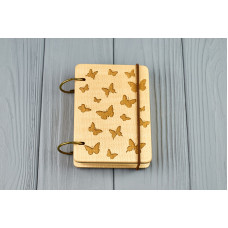 Кишеньковий блокнот з дерева формат А7 на кільцях "Метелики"