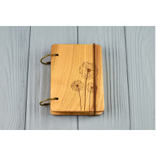 Кишеньковий блокнот з дерева формат А7 на кільцях "Кульбабкиі"